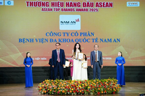 Không chỉ được công nhận trong nước, Nam An còn vươn ra khu vực. CEO Nguyễn Thị Như Lan – đại diện bệnh viện – vừa nhận giải thưởng Top 10 Bệnh viện Thẩm mỹ uy tín hàng đầu ASEAN, khẳng định vị thế thương hiệu Việt trên bản đồ thẩm mỹ quốc tế.