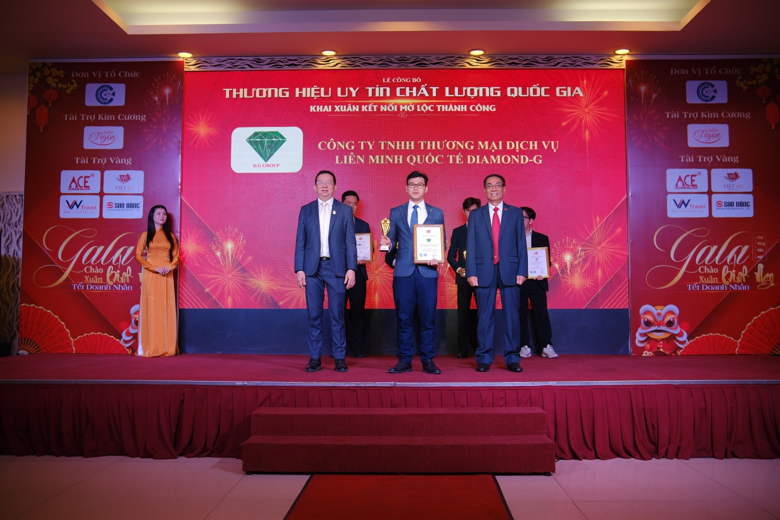 Ngày 01/02/2026, tại Thành phố Hồ Chí Minh, CÔNG TY TNHH THƯƠNG MẠI DỊCH VỤ LIÊN MINH QUỐC TẾ DIAMOND-G đã vinh dự được xướng tên trong Top 10 Thương hiệu Uy tín – Chất lượng Quốc gia 2026 tại Lễ công bố Thương hiệu Uy tín – Chất lượng Quốc gia. Giải thưởng là sự ghi nhận khách quan cho quá trình xây dựng thương hiệu bài bản, lấy chất lượng làm nền tảng và lấy niềm tin khách hàng làm giá trị cốt lõi của doanh nghiệp.