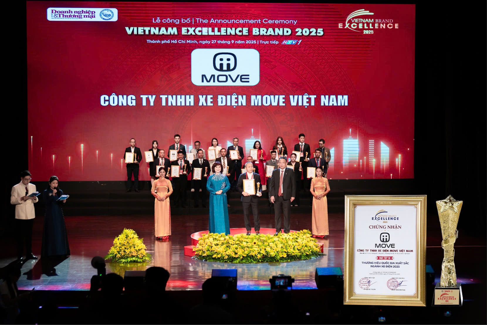 Trước thềm lễ công bố của chương trình Thương Hiệu Dẫn Đầu Việt Nam – Vietnam Leading Brands lần thứ XIII, thương hiệu xe điện MOVE thuộc Công ty TNHH Xe Điện MOVE Việt Nam chính thức được xướng tên trong hạng mục “Top 3 Thương Hiệu Xe Điện Dẫn Đầu Việt Nam năm 2026”. Lễ công bố sẽ diễn ra vào ngày 25/04/2026 và được truyền hình trực tiếp trên kênh HTV – Đài Phát thanh và Truyền hình TP.HCM.