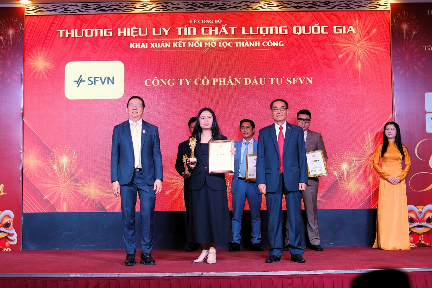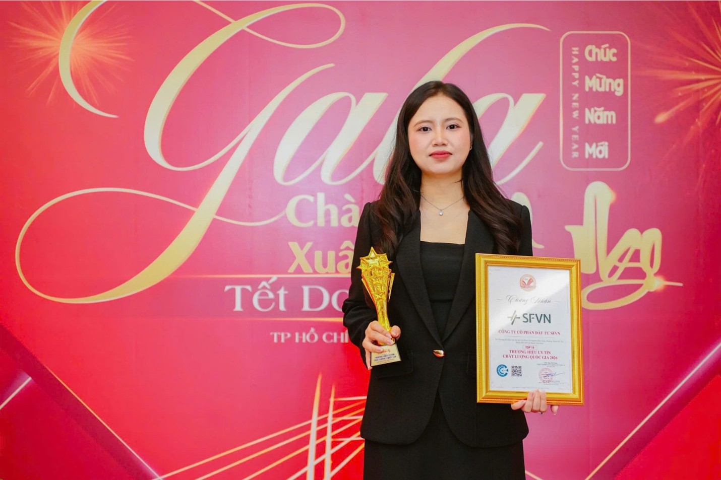 Bà Phạm Thị Phương Dung – Phó Giám Đốc Công ty Cổ phần Đầu tư SFVN nhận giải thưởng Top 10 Thương hiệu Uy tín Chất lượng Quốc Gia 2026.