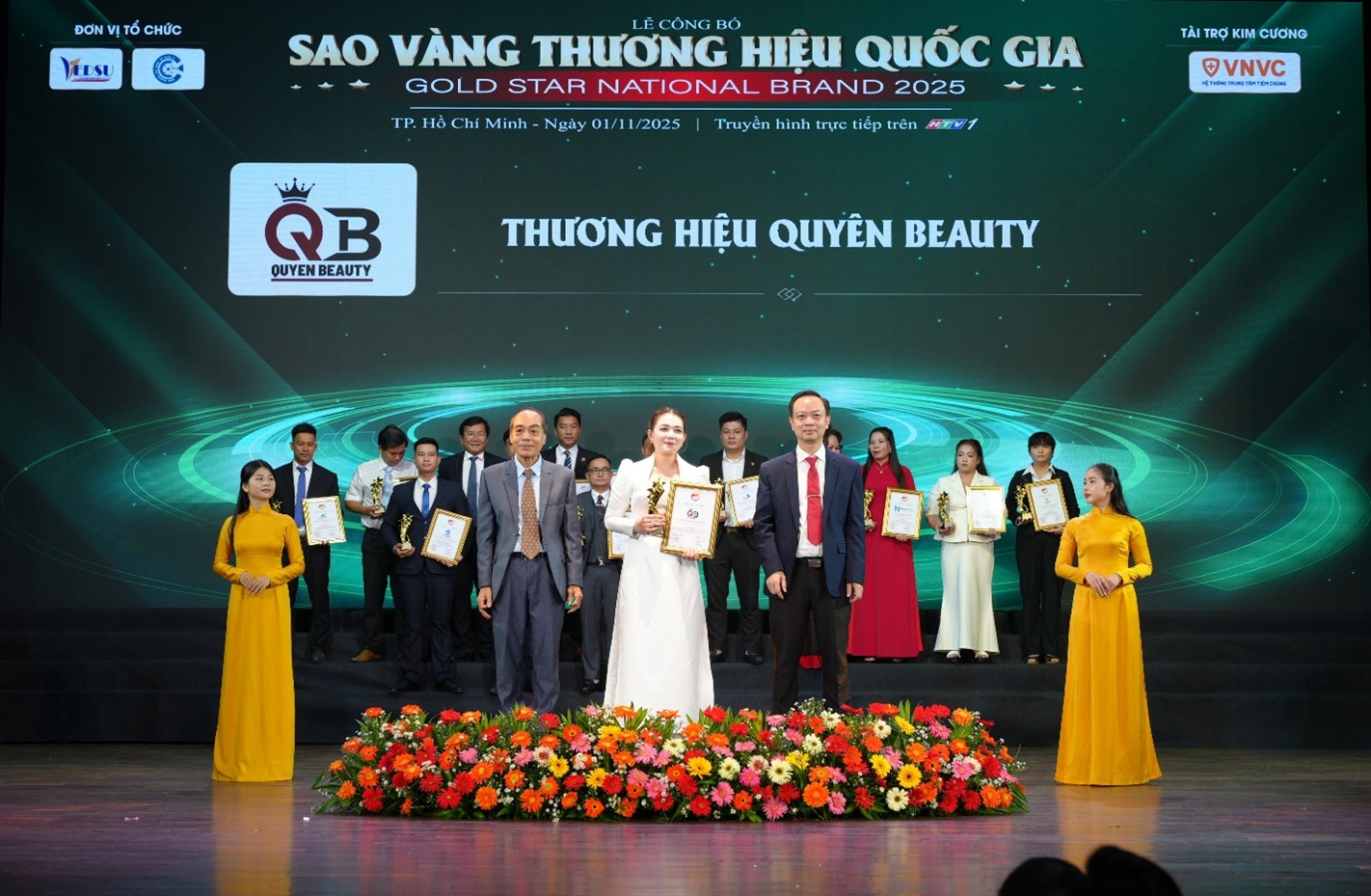 Sáng ngày 01/11/2025, tại Lễ công bố “Sao Vàng Thương Hiệu Quốc Gia - Gold Star National Brand 2025” lần thứ XI. Sự kiện long trọng này được tổ chức tại Nhà hát Bến Thành, TP. Hồ Chí Minh, truyền hình Trực Tiếp trên kênh HTV1, Thương hiệu Quyên Beauty đã được vinh danh hạng mục Thương Hiệu Uy Tín – Sản Phẩm Chất Lượng – Dịch Vụ Tin Dùng Quốc Gia 2025. Đây là giải thưởng đánh dấu sự phát triển bền vững của thương hiệu Quyên Beauty – một danh hiệu cao quý, ghi dấu cho hành trình không ngừng đổi mới, sáng tạo và là bước ngoặt đánh dấu hành trình bền bỉ của người phụ nữ từng khởi đầu từ đôi bàn tay trắng, đồng thời là niềm tự hào của thương hiệu mỹ phẩm Việt do chính người Việt tạo dựng.